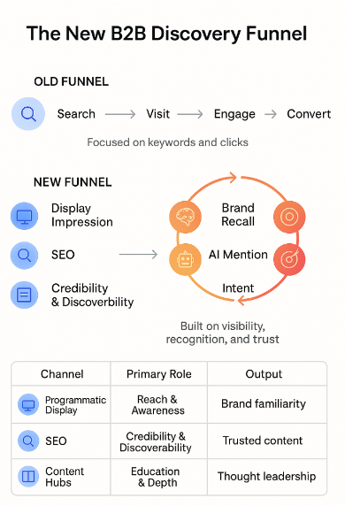 For B2B marketers, this shift reshapes how awareness is built and why display advertising is becoming the new visibility engine.